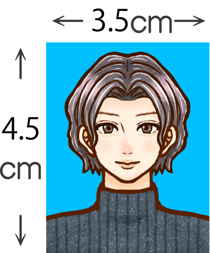 パスポートサイズ(タテ4.5cm × ヨコ3.5cm)・脱帽・無背景・裏に氏名を記入